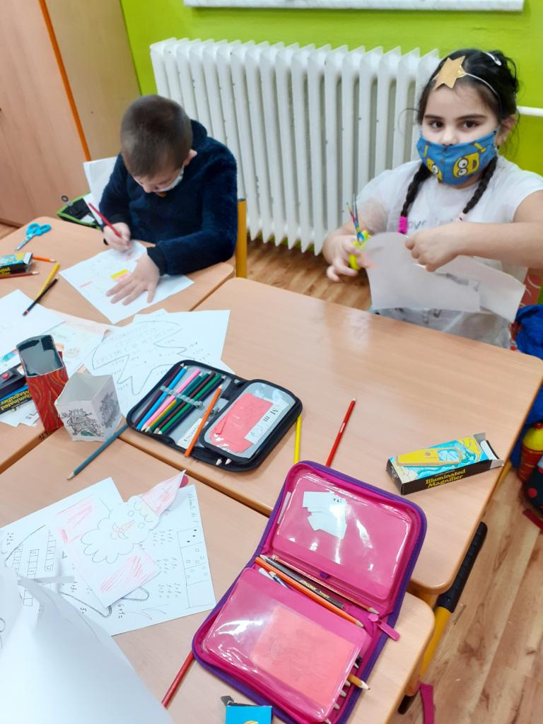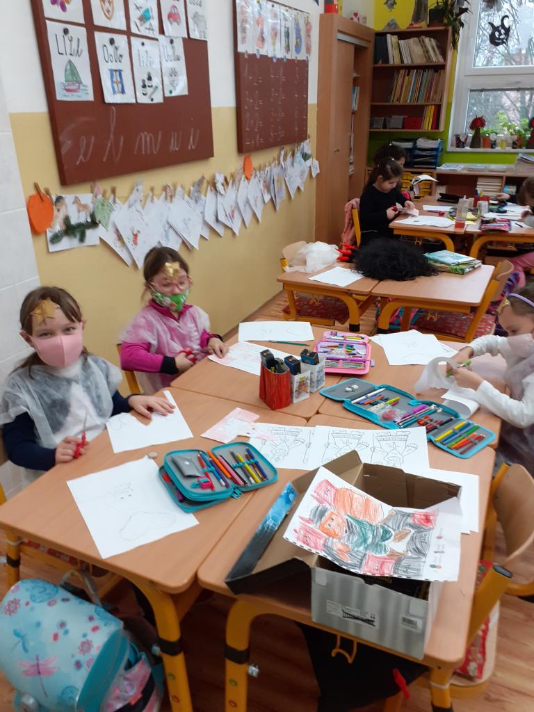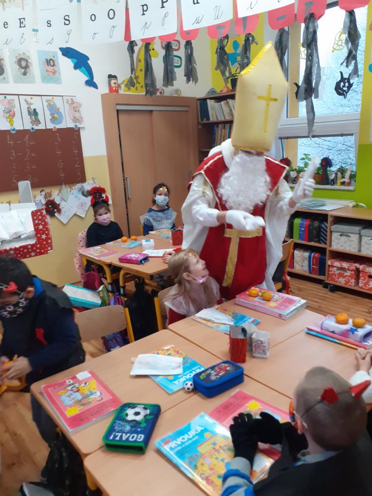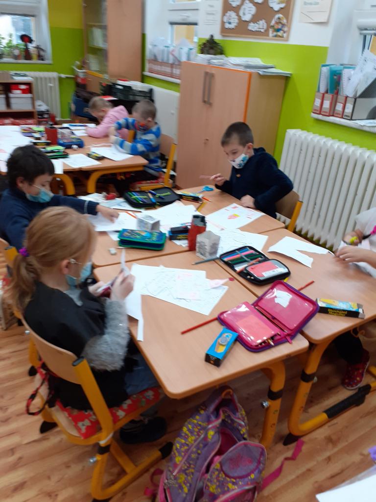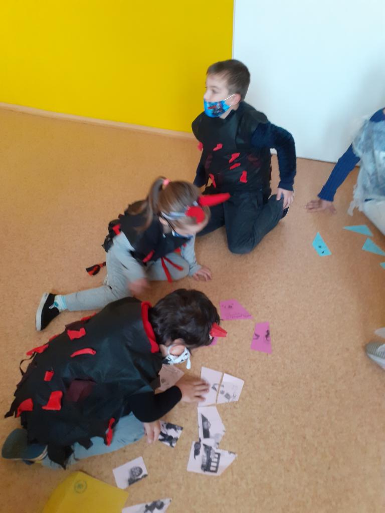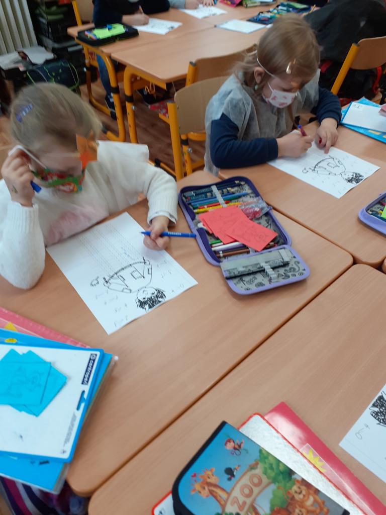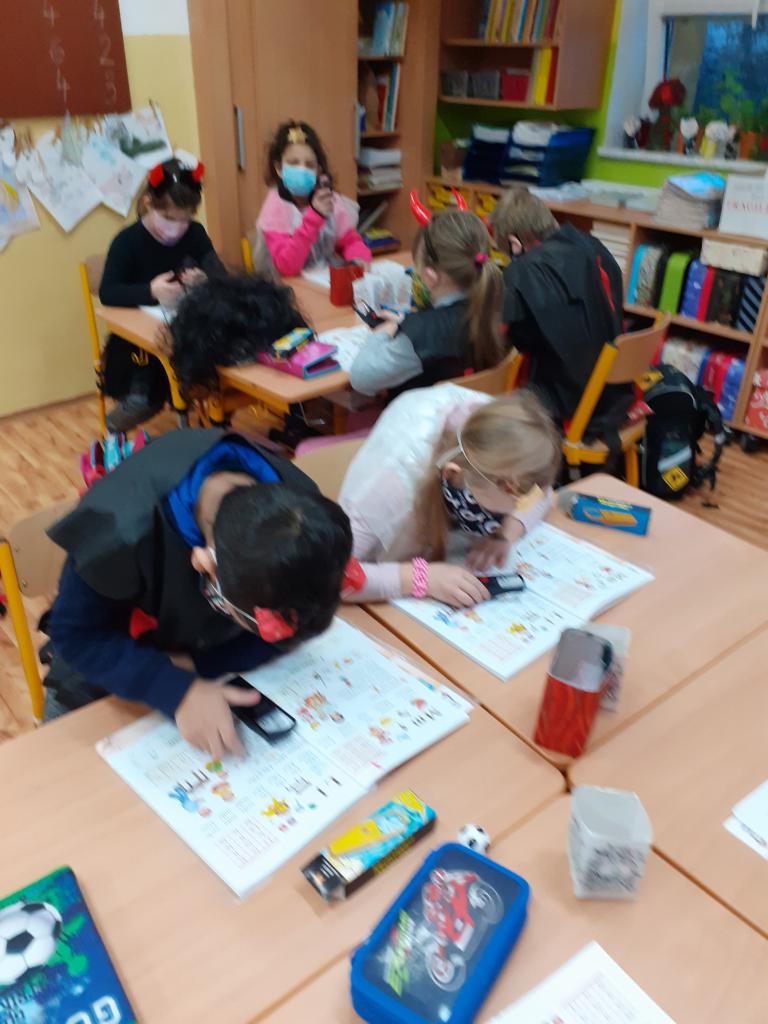 V pondělí 30. listopadu se 1.B. proměnila v čertí třídu. Pekelnice (třídní učitelka) rozdala dětem růžky, hvězdičky í kostýmy a rázem byla třída plná čertíků a andílků. Čerti z pekla pro děti připravili spoustu úkolů. Úkoly na den se děti dozvěděly vždy ráno z čertích dopisů. Malí čertíci, andílci skládali puzzle s motivy čertů, psali první písmenka, slabiky, slova, vyplňovali čertovskou křížovku, četli čertovské slabiky, slova, v matematice vybarvovali čertí obrázky podle výsledků matematických příkladů, řešili čertí slovní úlohy. Čerti nevynechali žádný předmět a tak i při pracovních činnostech, výtvarné výchově, tělesné výchově a hudební výchově se řádilo pekelně.