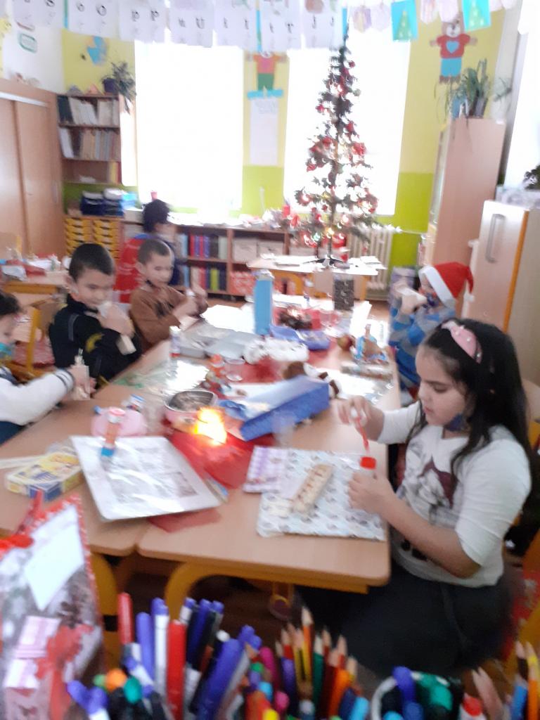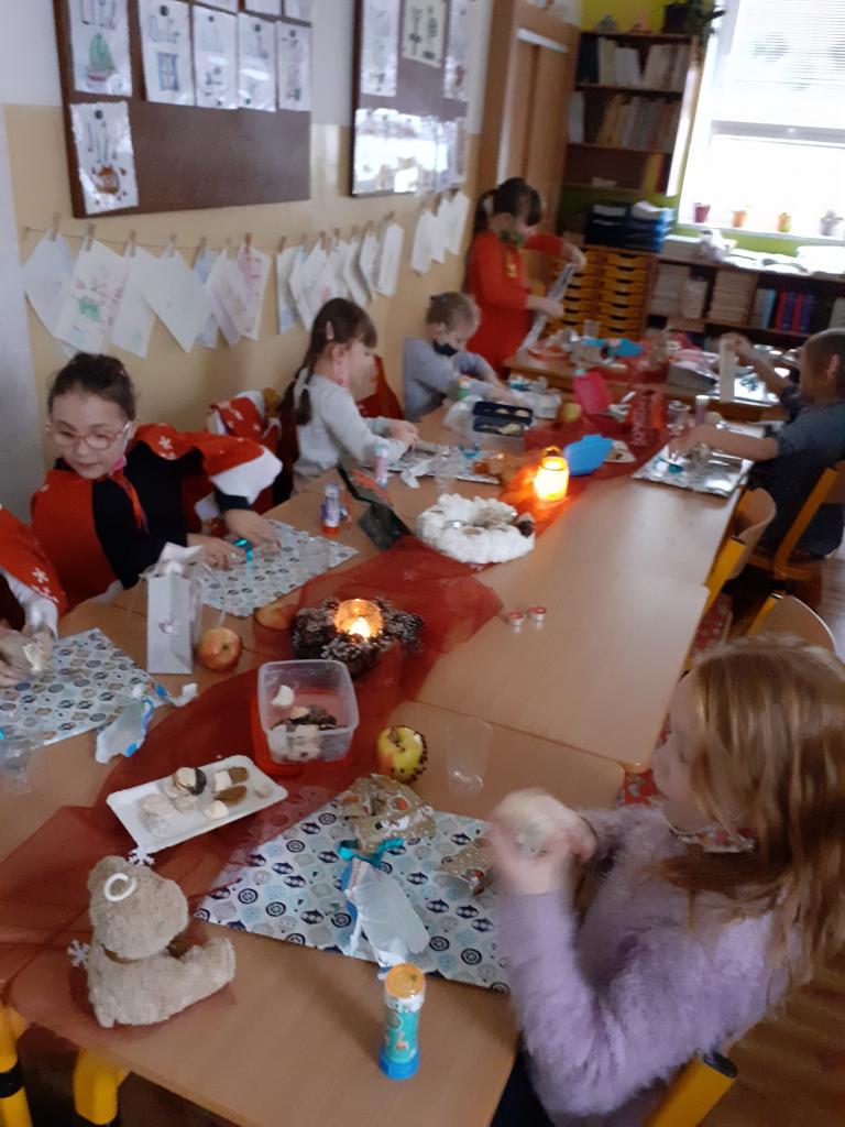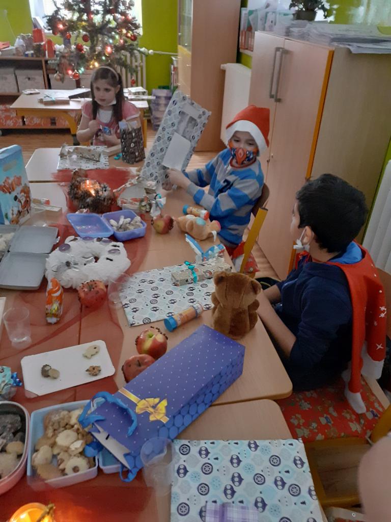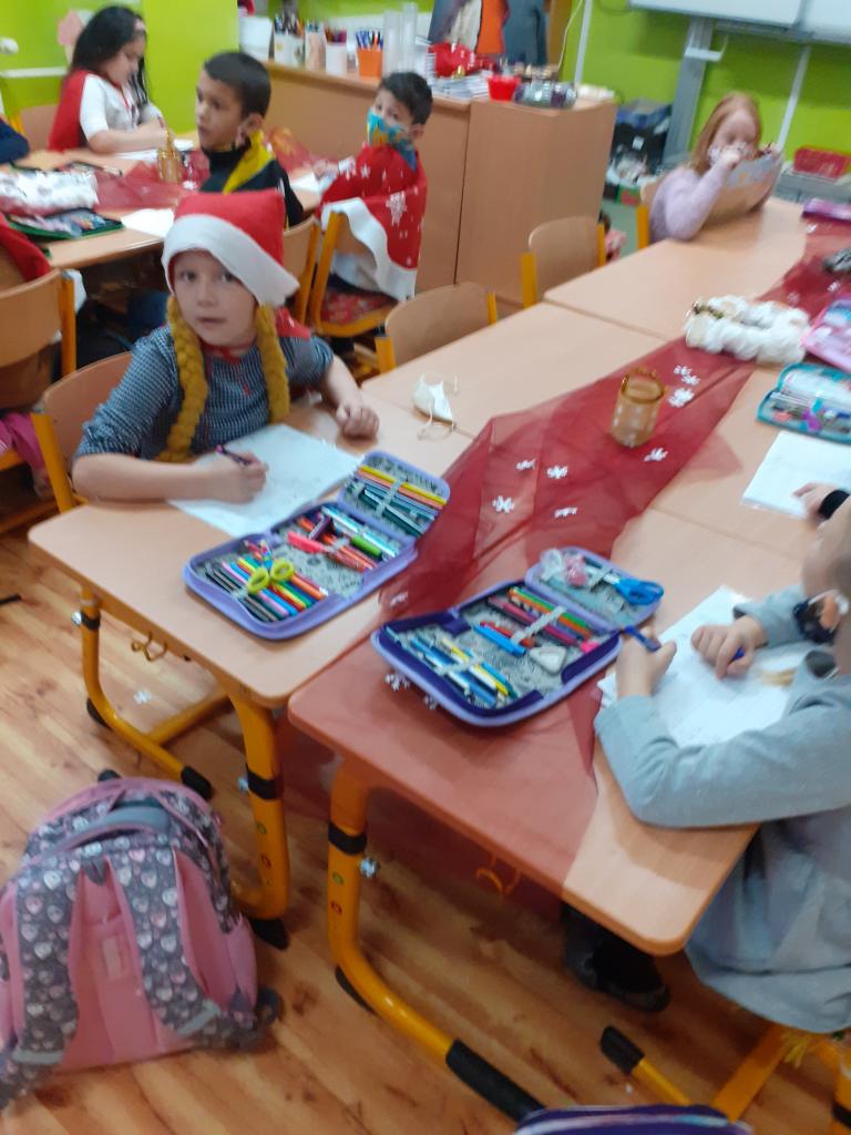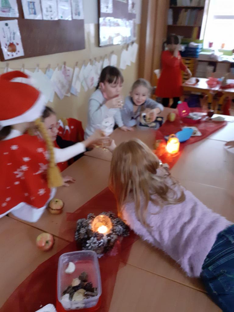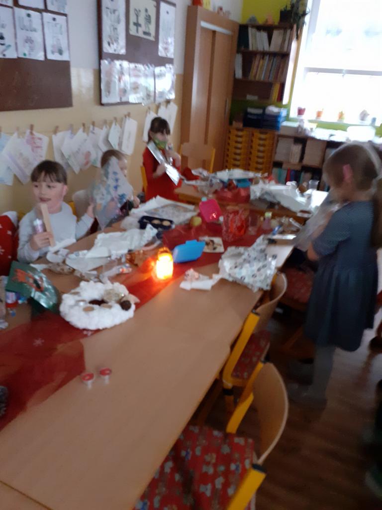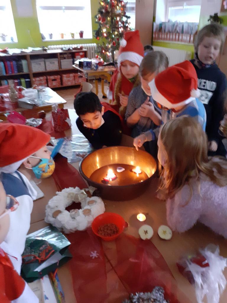 V pátek 18. 12. jsme strávili krásný Štědrý den ve škole. Náš první společný. Myslím si, že se moc pěkně vydařil a všichni jsme si jej užili. Ráno byla naše třída zamčená a nemohli jsme jí otevřít. Děti poslouchaly za dveřmi a slyšely nějaké rány, šramocení. Když jsme třídu otevřeli, čekalo na nás překvapení. Krásný rozsvícený stromeček s dárečky a slavnostně prostřená tabule. Co nás čekalo dále? Pověděli jsme si o životě Ježíška, poznali jsme mnoho zvyků, které si žáci možná vyzkoušeli i doma na Štědrý den. Víme, jaký poklad je jmelí, umíme vyrobit lodičku ze skořápek – naše lodičky ve škole se držely pohromadě, budeme tedy spolu celý další rok pobývat ve třídě v radosti. Víme, co znamená hvězdička v rozkrojeném jablíčku i zdravé jádro vlašského oříšku. My Skřítkové budeme po celý rok zdraví, jablíčko nám to prozradilo. Střevíček nám pověděl, jestli se vdáme nebo zamilujeme a lití vosku místo olova ukázalo také pěkné vyhlídky do budoucna. Vyrobili jsme si každý voňavé jablíčko a malé přáníčko. Povyprávěli jsme si, jak čekáme na Ježíška, jestli jsme psali nebo malovali dopis, kdo Ježíška už zahlédl a jak dává vědět, že už nadělil dárečky. Zavzpomínali jsme na všechny, které máme rádi a natěšili se na štědrovečerní večeři po celodenním půstu. Někdo se pochlubil, že viděl i zlaté prasátko. Známe i pár zvyklostí z oslav Vánoc z jiných zemí. A samozřejmě pochoutky nesměly chybět i na našich stolečcích. Svačinka byla opravdu vánoční. Vůně čajíků, vánočního cukroví a smrkových větviček provoněla celou třídu. Někteří se vůbec nemohli dočkat hodiny, kdy jsme si rozdávali dárečky. Každý dostal dárečky od školního Ježíška. Našli jsme pod stromečkem hru Mikádo (kterou hrají prvňáčkové každou přestávku) - to bylo radosti, puzzle a bublifuk. Děti si mezi sebou rozdaly také dárečky, kterými se navzájem obdarovaly. Děti vypadaly šťastně. Jsem moc ráda, že jsme tento den prožili naplno a ve velké radosti. Očička jen zářila.
