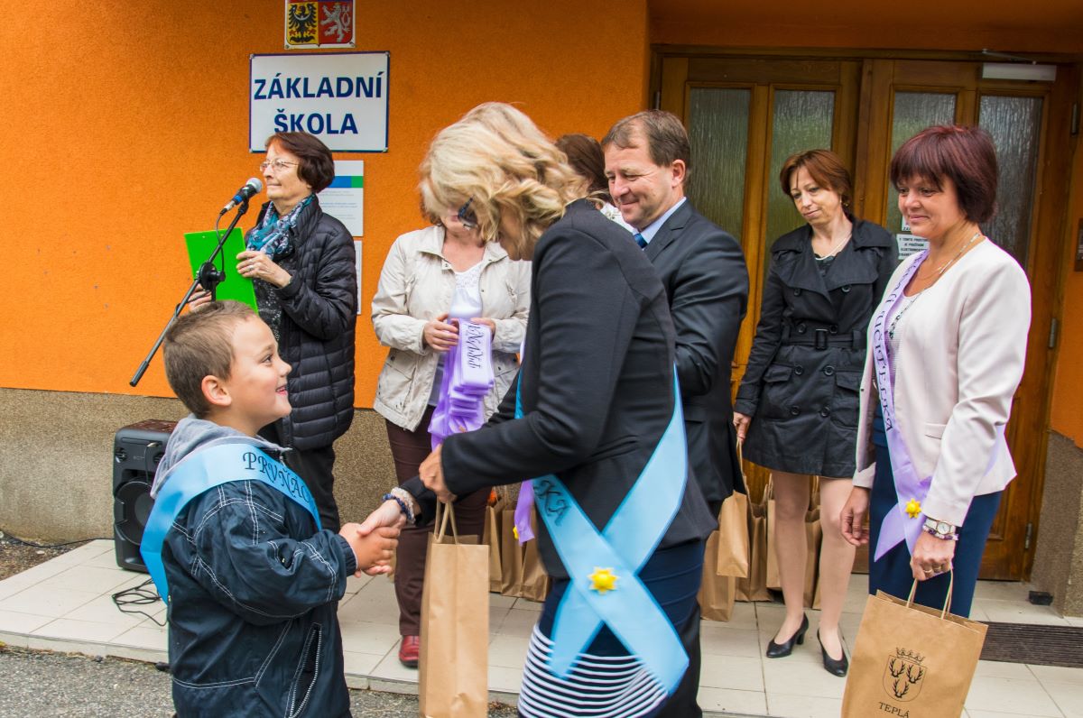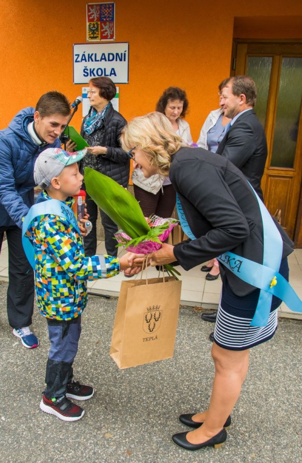 Den, na který mnoho dětí a rodičů čekalo, byl konečně tady. 1. září se před školou sešli nadšení budoucí prvňáčci v doprovodu svých rodičů a v letošním roce i poprvé žáci z celé školy. Žáci byli uvítáni panem ředitelem Mgr. Janem Soulkem a starostou Karlem Hermannem. Oba popřáli novým žáčkům, ale i starším spolužákům štěstí a chuť se učit, mnoho dobrých přátelství a hezký vztah s učiteli. Od pana ředitele dostali malí prvňáčkové šerpu a od své paní učitelky tašku se školními pomůckami, kterou dětem věnovalo město Teplá. Poté se děti odebraly se svou paní učitelkou do školy. Paní učitelky pak ve dvou nádherně vyzdobených prvních třídách zahájily školní rok.