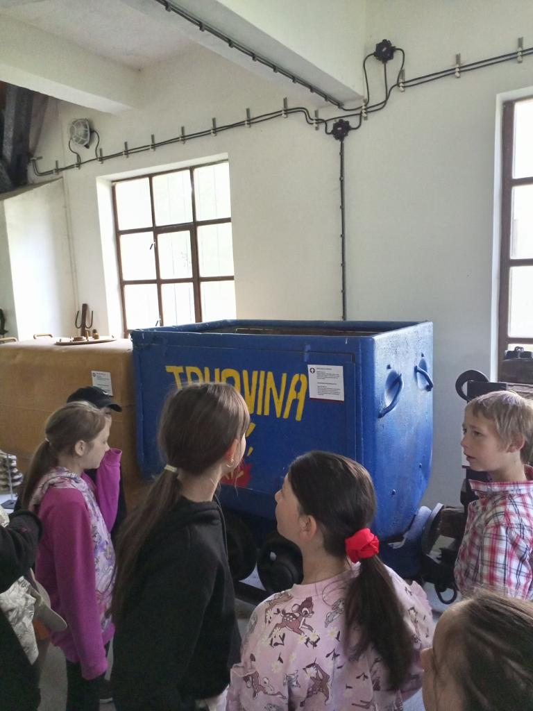 K dispozici jsme měli dva průvodce, kteří trpělivě odpovídali na dotazy žáků. Dozvěděli jsme se o těžební činnosti v okolí Krásna. Prohlédli jsme si těžební vozíky, lokomotivy, těžební „klece“, pomůcky k těžbě, různé zajímavosti (telefon, sanitní vozík apod.). Žáky zaujaly modely těžních strojů. Prošli jsme umělou štolou. Kdo chtěl, svezl se těžebním vláčkem určeným k přepravě osob. Žáci směli vylézt do parní i elektrické lokomotivy, upraveného vagónu. Ve vnitřní expozici muzea jsme zhlédli skutečný parní stroj z bývalého dolu Marie z Královského Poříčí. Nakonec jsme obdrželi omalovánky a pracovní listy týkající se muzea. Se spoustou nových zážitků jsme se vydali zpět do Teplé.